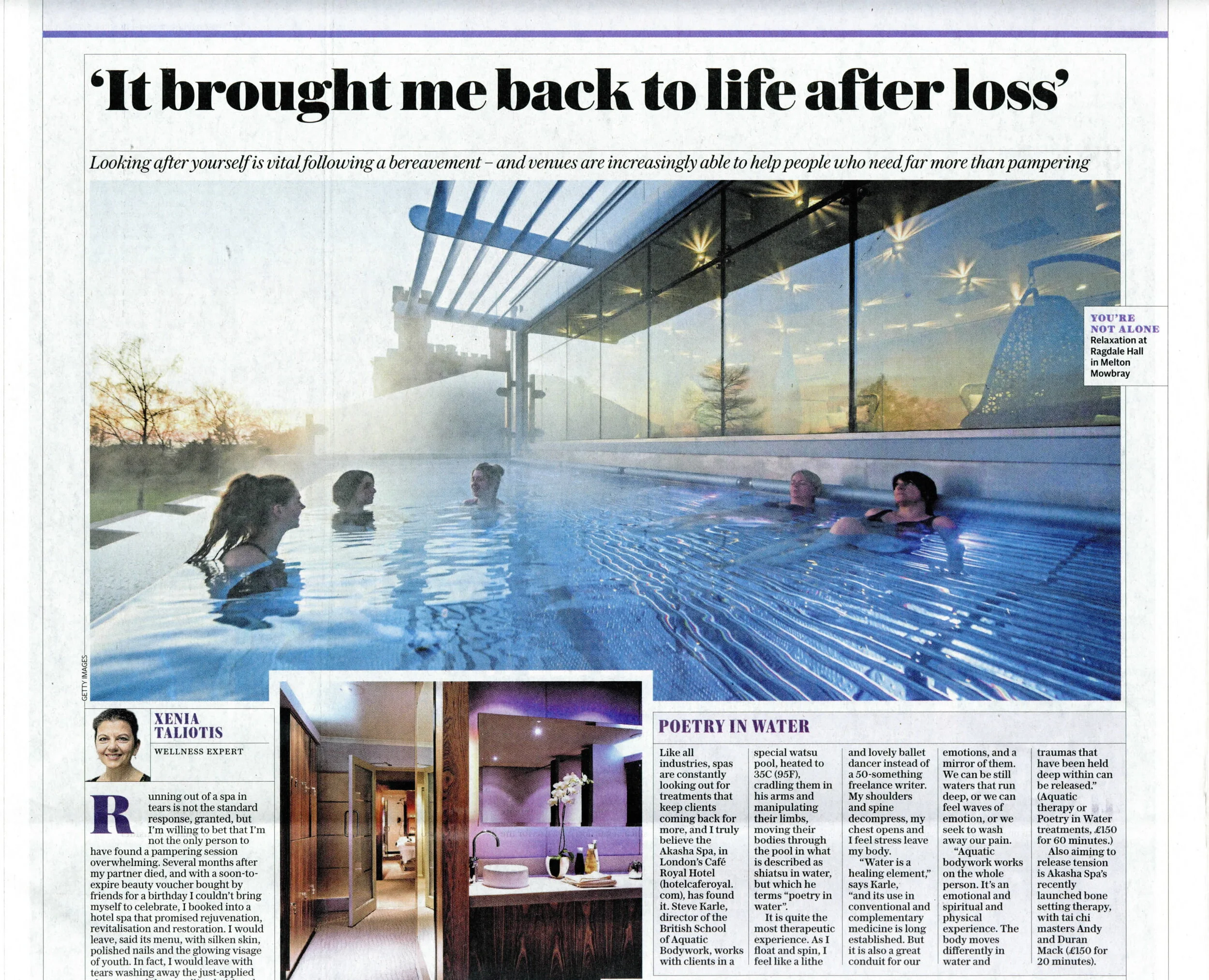 “Steve gently guides you through a series of movements, stretching and star-fishing you around the pool. It lengthens the spine, reprograms muscle memory and calms the mind. A total tonic for helping with insomnia.”